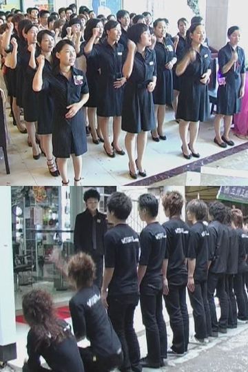 In a playful critique of the mechanisation of the body and the militarisation of the workplace Zhou Tao collages choreographed chants that take place in morning group meetings a form of taking attendance at the beginning of a workday for shops and companies in Shanghai and Shenzhen