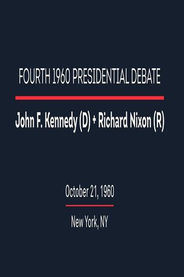 The fourth and final presidential debate between Vice President Richard Nixon and Senator John F. Kennedy took place on Friday, October 21, 1960, at the ABC studios in New York City, New York. The debate was moderated by Quincy Howe of ABC with Frank Singiser, John Edwards, Walter Cronkite and John Chancellor as panelists. Questions were related to Foreign affairs.