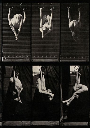 A gymnast performing on the rings (1887)