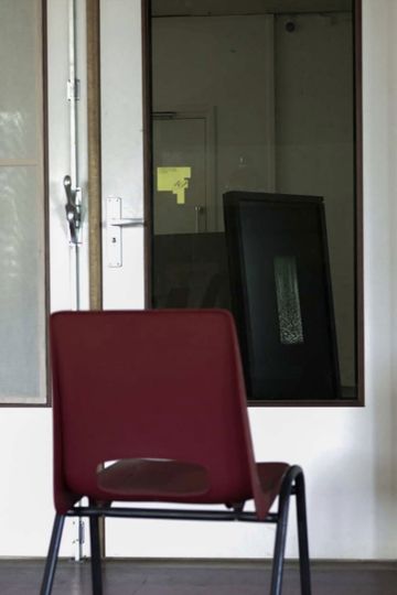 "Water reflections are never static, its fluid form constantly plays with the light in new and totally unique ways. Trying to capture this process naturally leads to an imperfect representation. Embracing this, ‘a puddle of water held in shape by my thoughts’ plays with the materiality of the digital image with the border between digital grain and the movement of the water constantly blurring. This ongoing research project consists of clips recorded over the last two years. - During the Leaving Space exhibition (2024) the work was presented as an installation using an old LCD screen, a wash-stool and other spacial elements. The space where the screen was installed could only be observed from the outside through the glass doors but not entered.