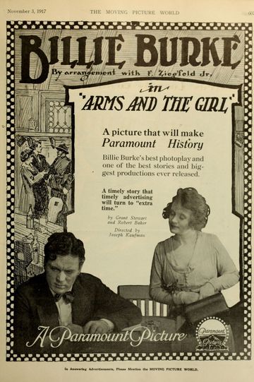 Ziegfeld Follies headliner Billie Burke starred in a handful of silent films, of which Arms and the Girl was the second. Burke plays an American lass who journeys to Europe to be reunited with her fiance. Not only has her sweetheart been unfaithful, but she arrives on the continent just as World War I breaks out.