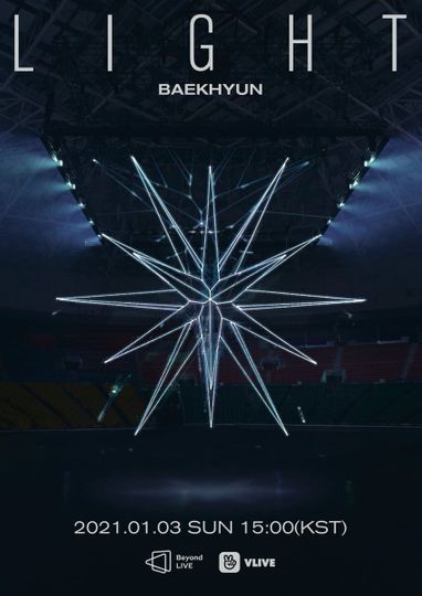 On January 3 2021 Baekhyun held his first solo concert BAEKHYUN LIGHT which was broadcast digitally through Beyond Live due to restrictions related to the COVID19 pandemic The concert drew 110000 viewers from 120 countries