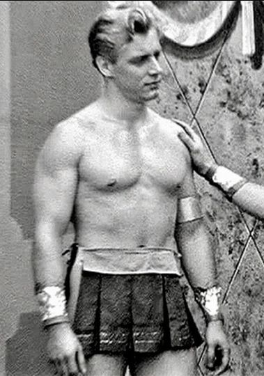 Ben-Hurry (1959) dir. Richard Fontaine Apollo Films/Zenith Pictures/R.A. Enterprises made at AMG Studios (Bob Mizer's Athletic Model Guild) starring: Alan Parker, Bruce Reed and Joe Leitel "A comedy about three movie extras and the troubles each one gets into on the movie set of a six million dollar movie production." via: Richard Fontaine's Days of Greek Gods (2011) The Bob Mizer Foundation film archive: https://www.posingstrap.tv/videos/ra34-dvd21 http://www.bobmizer.org/