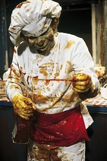 Paul McCarthy, with the mask of Mad Magazine icon Alfred E. Neuman, prepares a meal – makes a mess – in the set of the America soap ‘Family Affair’.