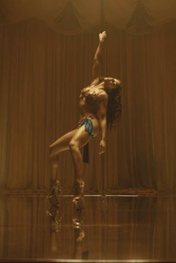 FKA Twigs performs in the music video "Cellophane" from the single recorded for Young Turks Records. The music video opens with FKA Twigs walking through a curtain onto a stage where she walks in extreme high heels. She dances on a pole. Visual effects create a surreal effect of falling while she dances.