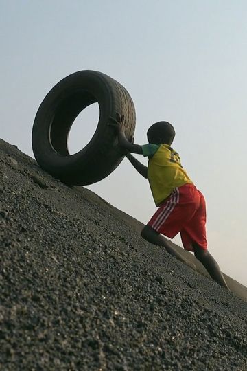 Over the city of Lubumbashi looms the mampala or slag heap of the Étoile du Congo cobalt mine, its lower slopes today sifted by the clandestins, lithium hunters who risk their lives to feed our global battery market. The film rests on dramatic contrasts – tiny bright figures against the expanse of darkness; a child who can barely see over the colossal tire he fights to push uphill. Then the adrenaline rush of rolling down inside it! Yet the song the kids invented “pushing, pushing” to solve post-industrial problems, gives faith in these young carriers of D.R. Congo’s future.