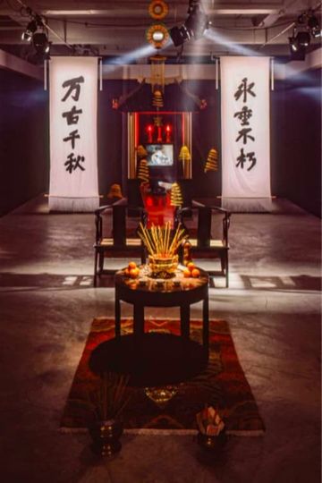 The images seem to suggest a traditional Chinese funeral ceremony associated with ancestor worship, though Wong has remarked they do not represent any particular ritual. The work deals with death, remembrance, and history, and was conceived as a memorial to the Chinese workers who died building the Canadian railway through the Rocky Mountains. It is also dedicated to the artist’s father, Hoy Ming Wong, and to two friends and collaborators who committed suicide, Ken Fletcher (1954-1978) and Paul Speed (1967-1991). Wong created the work while artist-in-residence at the Banff Centre for the Arts in Alberta. Chinaman’s Peak is the name of a mountain near Banff where, according to legend, a Chinese worker killed himself. The work was first performed at Tunnel Mountain, Banff in 1992, before being exhibited as an installation at the Contemporary Art Gallery in Vancouver, for the Chinese New Year, in 1993.
