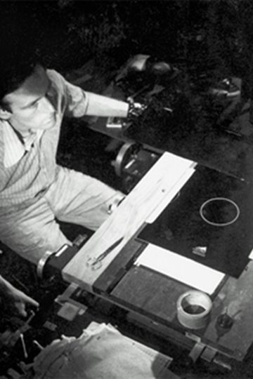 “Cone of Variable Volume was a conical form, which expanded and contracted in volume, like a lung. The rhythmic movement is imperceptible at first, and progressively accelerates in speed.”