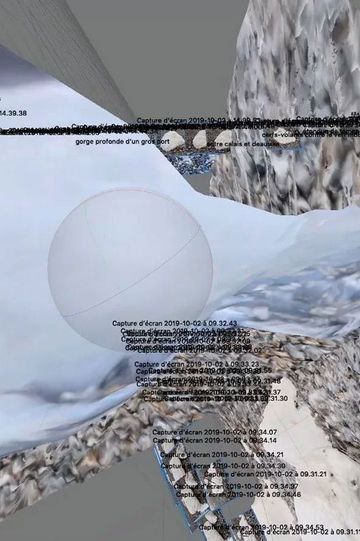 The Craeria probe lands on a chalk asteroid, where all the traces of time are still visible, where all the dimensions of the landscape are to be imagined and retraced. Photogrammetry will allow us to establish perimeters, to bring back to our sight the immeasurable dimensions of an unknown porous horizon. An archaeology of the white stone beach begins...