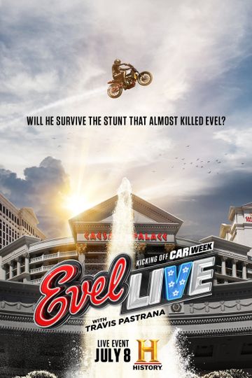 Kicking off History Channels second annual car week American professional motorsports icon and Nitro Circus ring leader Travis Pastrana honors legendary daredevil Evel Knievel by attempting three of his most dangerous feats in Las Vegas Nevada all while riding a modern day recreation inspired by the motorcycle Knievel used