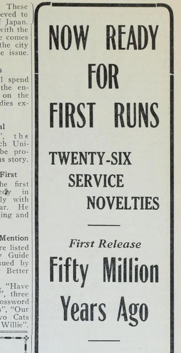 A German animated film about dinosaurs that was repackaged in the United States during the Scopes Monkey Trial. The opening scenes depicting the formation of the earth, and early marine life, employ such simple means of simulating movement as a moving camera and sliding cels and overlays. One primal, insect-like creature is pictured by means of an elaborate jointed cutout, its legs and antennae manipulated frame by frame—a technique favored by some early animators. Most of the creatures in this film pose sedately before painted backdrops or simple settings; the effect is that of museum dioramas come to life.