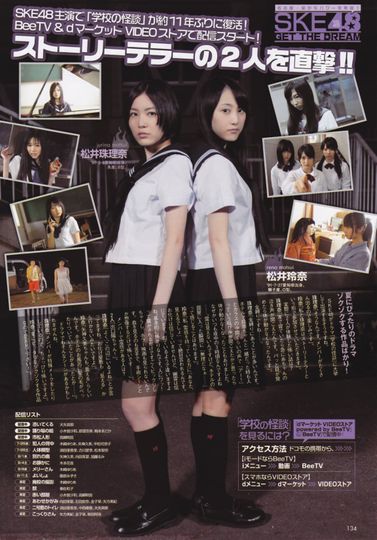 "Gakkô no Kaidan" is an original horror drama, with the members of SKE48 playing main roles throughout the 15 episodes. It's the first adaptation in 11 years and supervised by Tôru Tsunemitsu (the author of the original books).