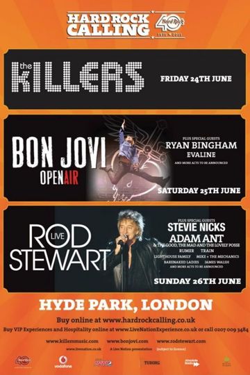 Tracklist 01 Bon Jovi It s My Life 02 Bon Jovi Blaze Of Glory 03 Ray Davies All Day And All Of The Night 04 Rod Stewart Baby Jane 05 Train Ramble On 06 Train Hey Soul Sister 07 Rumer Take Me As I Am 08 Lissie Little Lovin 09 Stevie Nicks Gold Dust Woman 10 Stevie Nicks Secret Love 11 Stevie Nicks Landslide 12 Adam Ant Ant Music 13 Vintage Trouble Blues Hand Me Down 14 The Kaiser Chiefs I Predict A Riot 15 The Killers A Dustland Fairytale 16 The Killers Moon River 17 The Killers Mr Brightside 18 The Killers Human 19 The Killers When You Were Young 20 Bon Jovi Always 21 Bon Jovi Livin On A Prayer 22 Rod Stewart with Stevie Nicks Young Turks 23 Rod Stewart with Ronnie Wood Stay With Me 24 Rod Stewart Sailing