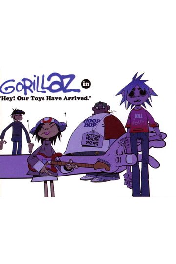 The Gorillaz crew check out their new action figures.