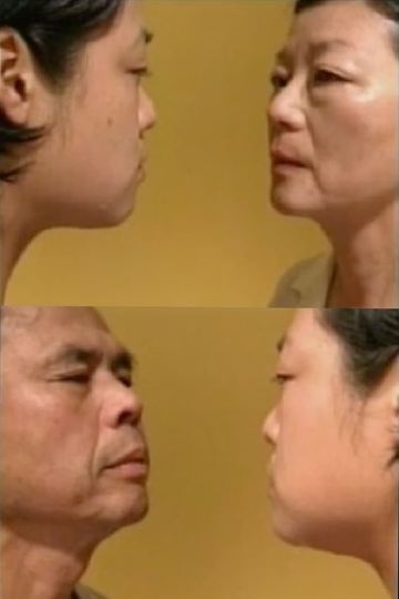 In this dual-channel video, two separate scenes of the artist with a parent are juxtaposed. Chang faces her mother and, in the adjacent frame, appears face–to–face with her father. Simultaneously both images show the artist’s and respective parent’s faces pressed together in what at first appears to be a deep kiss. Gradually it becomes evident that the video is running in reverse time, and that they share not a kiss but rather an onion from which they both eat. They bite into it slowly, pausing as they take turns offering it to each other, as if it suggests the proverbial, forbidden fruit. Parent and child swallow before they take additional bites, blinking hard to hold back tears from the onion’s sharpness and pungency. However, in the video’s reversal of time, the onion is reconstituted and the tears disappear—wholeness is thus regained.
