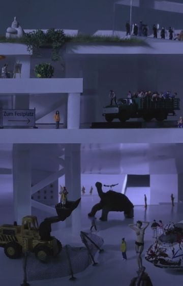 Model figures and plastic buildings in an imagined post-apocalyptic metropolis.