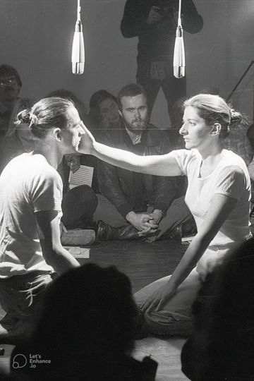 Ulay and Abramovic face each other in a kneeling position, and take turns to slap each other hard in the face. Due to the strong light shining onto their faces, they cannot see the slap coming from the dark.