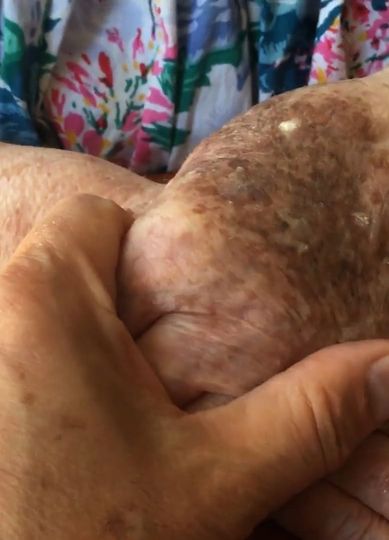 A son try to speak to his old mummy.