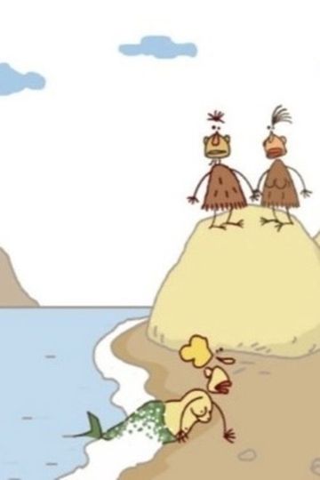 Mermaid or not a mermaid? That is the question for the caveman and his girlfriend.