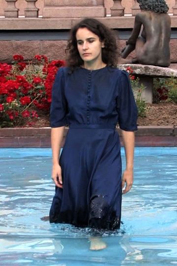 as The character in the red dress / The character in the blue dress