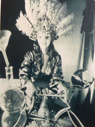Organic Honey's Visual Telepathy is based on Jonas' 1972 performance of the same name, the first in which she used video. In an enigmatic ritual of identity, Jonas performs as herself and as her masked double, Organic Honey. Dressed in a feathered headdress and costumes, Organic Honey is the embodiment of artifice, masquerade and narcissism — a female alter-ego whose guise is a frozen doll's face. This elliptical, nonlinear narrative performance explores themes that are emblematic of Jonas' early video work: The study of female gestures and archetypes, both personal and cultural; the use of disguise and masquerade, ritual objects and ritualized self-examination; and an inquiry into subjectivity and objectivity. The work's formal elements — the layering of mirrors and mirrored images, manipulations of reflective space and spatial ambiguity, and the use of drawing to add a further layering of meaning — are also Jonas' signatures.