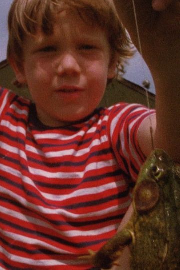 A little boy celebrates his frog catch