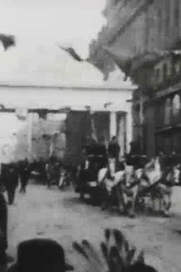 "Taken at San Francisco, Cal., at the Golden Jubilee. This picture shows a procession of the resident Chinese of San Francisco, carrying banners, flags, etc. They are followed by an immense float drawn by four white horses. In the background is seen a beautiful arch, while across the street are hung numerous flags, which wave in the wind" --Edison films catalog.