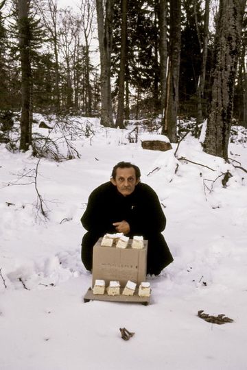 The production of cultural meaning and of value takes on a number of associations in Krumpira Krumpira Potatoes Potatoes from 2001 The film pictures the artist selling cakes a substitute for the standard plebeian foodstuff bread in the middle of a deserted snowy forest landscape