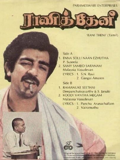 Rani Theni is a Tamil language film starring Kamal Haasan as the protagonist. The film's hero is playback singer Deepan Chakkaravarthi, son of Trichi Loganathan, who is an ace veteran cine playback singer of yesteryear. The film's female leads are played by Rajini nivedhita, Vanitha krishnachandran. Kamalhassan plays a comedy role with no connection with the main story and interacts only in one scene with main villain Sivachandran, who plays a role of Playboy and Casanova and his character is finally killed by Heroine of the movie.