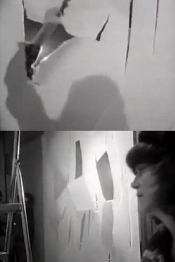 Record of an artistic intervention by Ana Hatherly at the Quadrum gallery, in Lisbon.