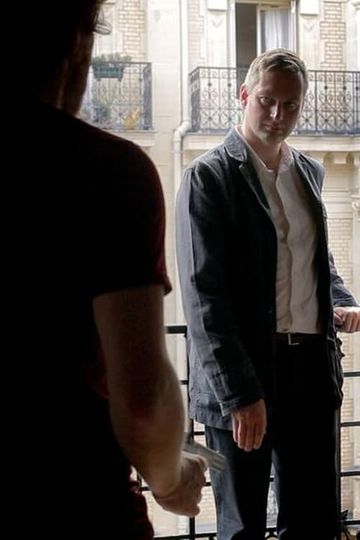 In a single static shot a man is threatened with death at anothers gunpoint