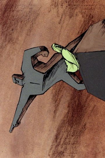 A monument is revealed. It is a figure, pointing in a particular direction, its arm out-stretched. The masses greet it with approval.