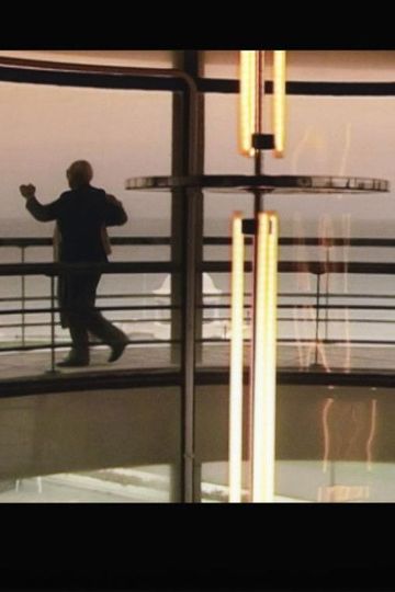 The Other Side is a double-screen video installation commissioned as part of Breakwell’s residency at the De La Warr Pavilion in Bexhill-on-Sea, East Sussex during the summer and autumn of 2000. The film was shot on the Pavilion’s upper landing, the camera positioned looking out through the curved windows of the stairwell across the exterior balcony to a view of the sea and the horizon. It comprises two alternating sequences projected onto either side of a free standing wall. Footage of elderly couples ballroom dancing on the balcony outside has been slowed down to the rhythm of the accompanying soundtrack, an extract from Franz Schubert’s Nocturne in E-flat Major (Op.148) overlaid by the sounds of breaking waves and seagulls. In the alternating scene, played to the same sound, panoramic vistas of the view out of the building towards the sea and horizon beyond are empty of human presence.