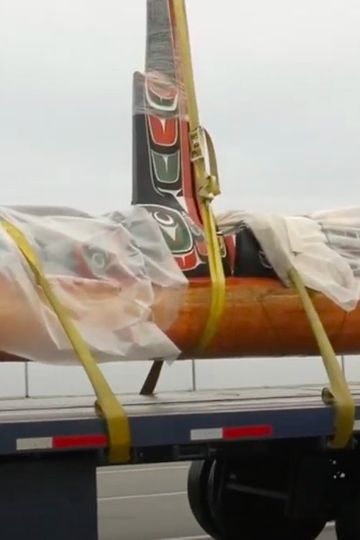 Working with friends and family Kevin Cranmer carves a memorial pole in honour of his later father Chief Daniel Ear Cranmer The pole is erected before the former site of St Michaels Residential School