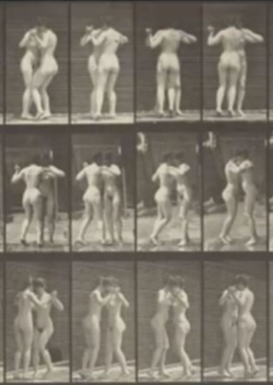 Earliest moving images of social dancing, depicting a clothed man and woman waltzing, two nude women waltzing, and a single nude woman waltzing.