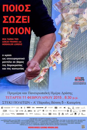 Who is saving whom is not just another bank rescue and Euro rescue film It reveals much more what it is that all the rescues hide right up to the present day tragedy of Greece The radical alteration of society in Europe The transformation of private debt into public debt which has been papered over and presented as a rescue has not only driven democracy to absurdity It has shaken societies which consider themselves socialist societies with rule of law to their foundations No one formulates this better in the film than Mario Draghi who as a one time vice president of Goldman Sachs and present president of he ECB steers the economies in the Euro area The European social model is history Saving the Euro will cost a lot of money That means we will have to take leave of the European social model For seven years now the rescue is taking place with the help of hundreds of Billions of public money