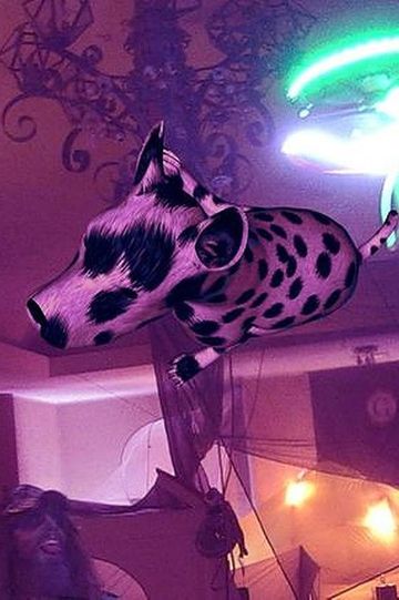 The video displays Fitch and Trecartin's signature style of ludicrous cut-scenes and ironic hyperbole. “Yielders Path” also features swerving point-of-view shots from a quadrocopter, often focusing on ceiling fixtures with stoic reverence. The plot oscillates between mundane detail and highly saturated shenanigans, reiterated by a bazaar soundtrack that punctuates atmospheric compositions with pop music. “Yeilders Path” is presented on the ceiling of a black-curtained room, positioned with the same perspective of much of it’s subject matter. A large futon and theater seats nestled between fake plants provide an inviting viewing environment.