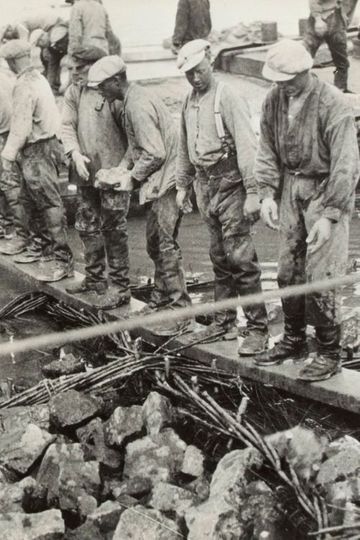A commissioned documentary short showing the effort over several years to close off a shallow bay in the northwest Netherlands from the rest of the North Sea by engineering a dyke, with an area later turned into land after drainage.